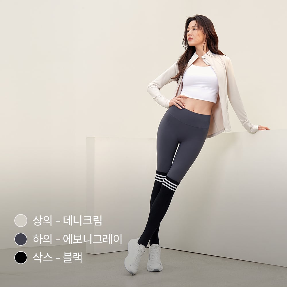 團購_Jun Ji-Hyun Set - Zip Up & Fleece Leggings & Knee Socks by Andar