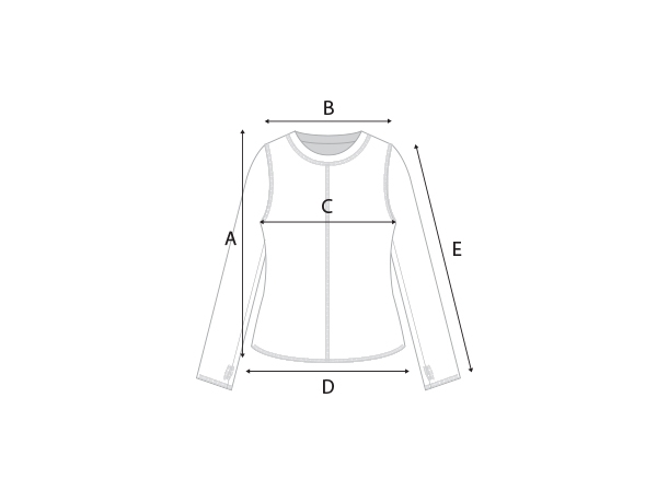 尺碼 | (A) 全長 | (B) 肩寬 | (C) 胸圍 | (D) 下擺圍 | (E) 袖長 |