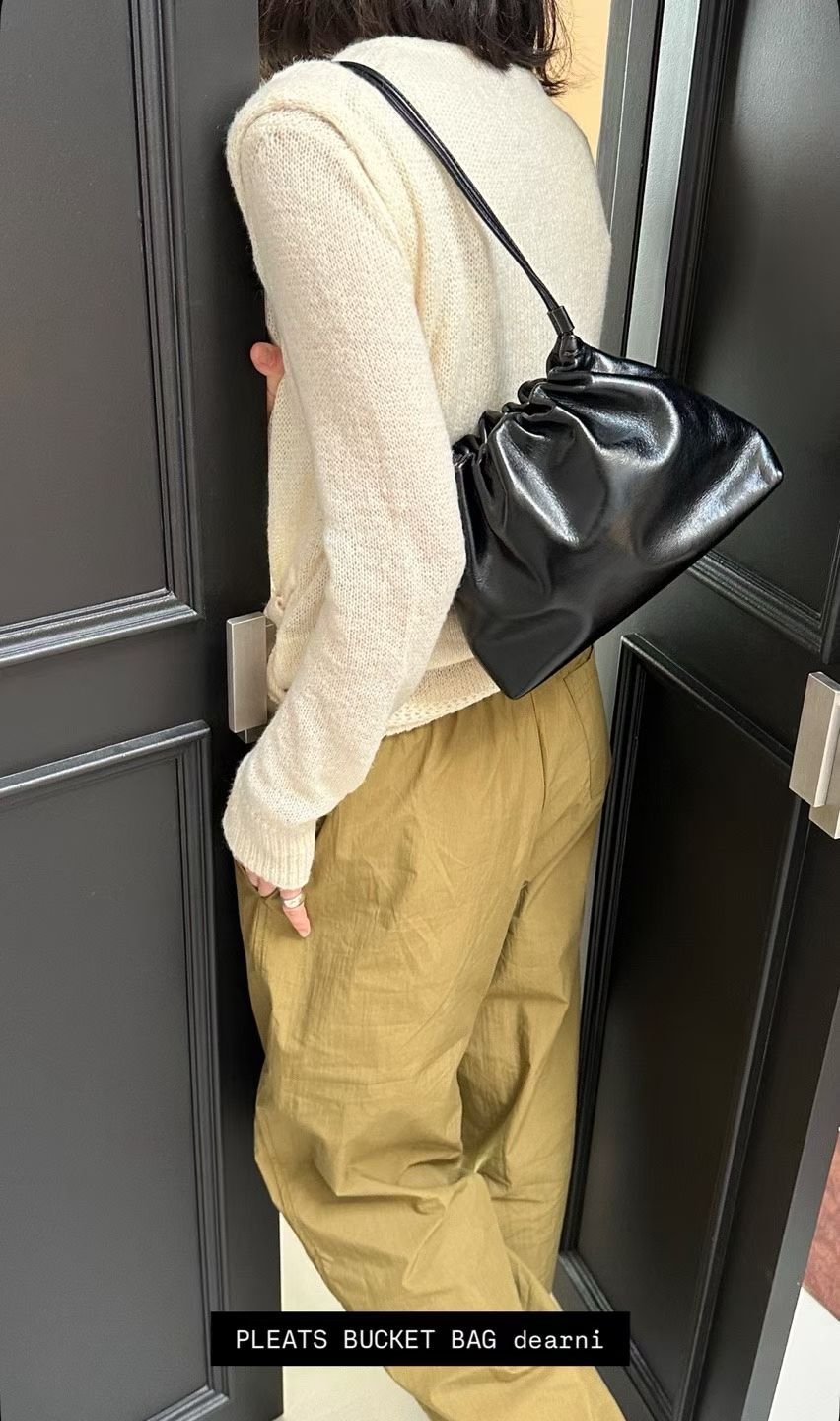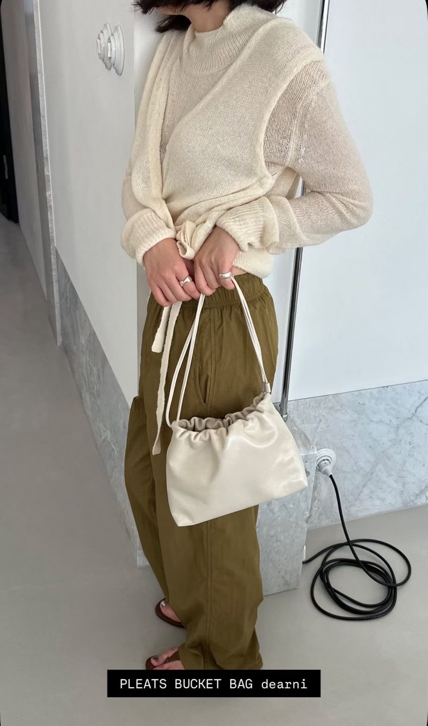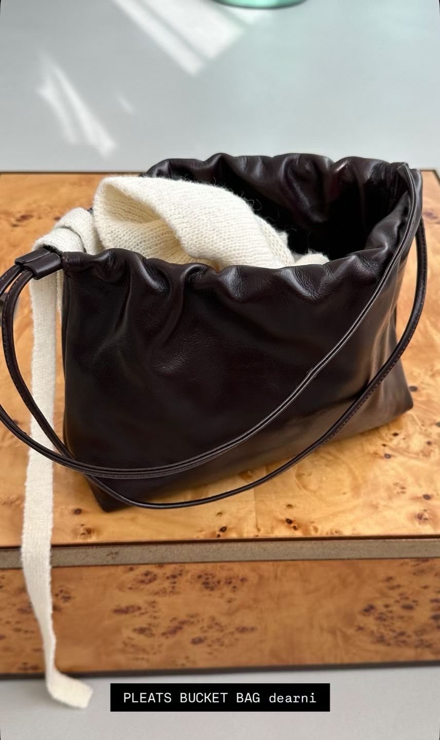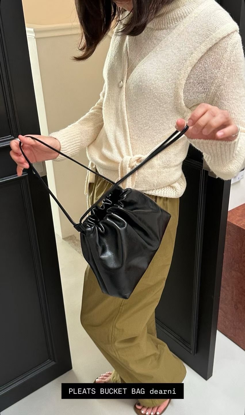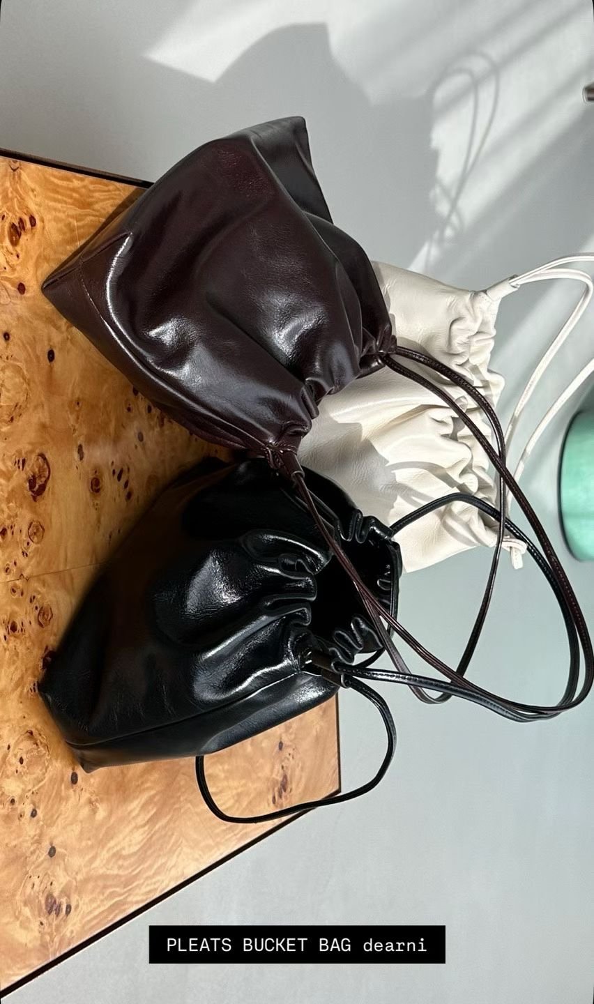【新品牌dearni】預訂_牛皮Pleats Bucket Bag By dearni
