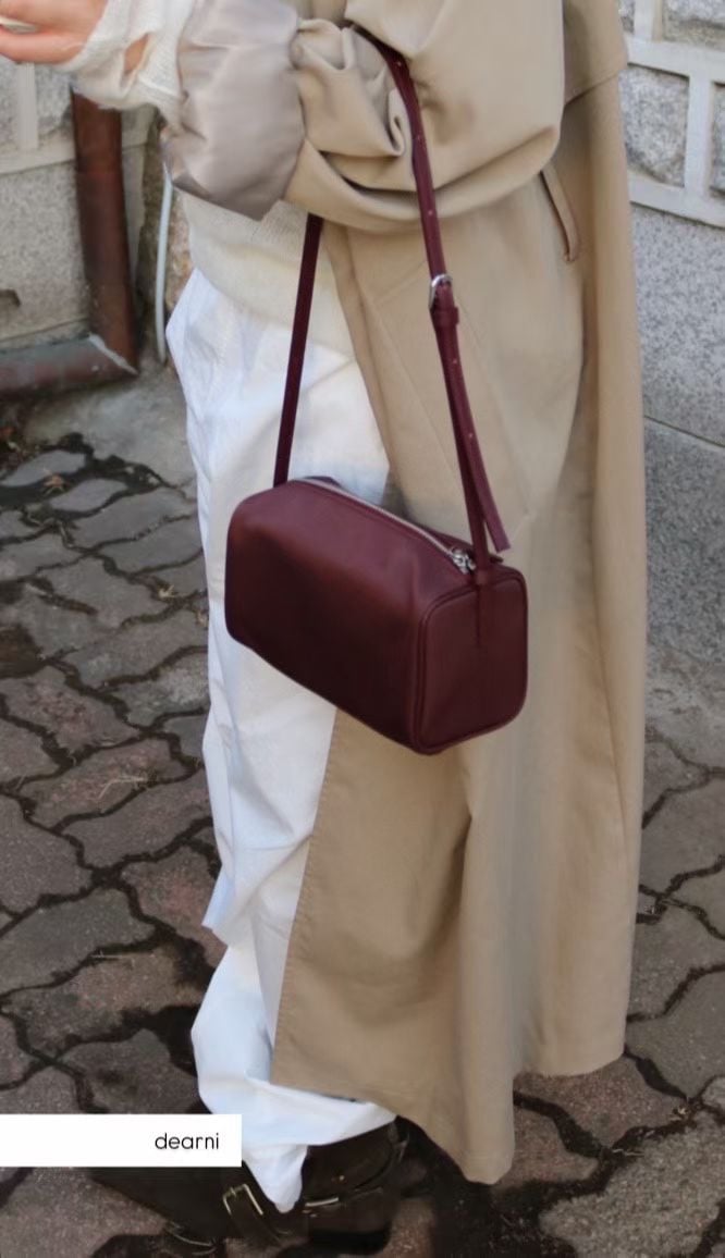 Black/Red/White/Wine Size: 11 x 20 x 10 cm 尼龍材質, 肩帶牛皮材質 肩帶可調節 Made in Korea
