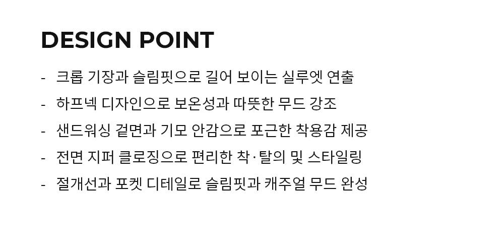 DESIGN POINT - 修身剪裁,打造修長輪廓 - 半領設計,溫暖舒適 - 砂洗外層和拉絨內襯,帶來舒適感受 - 正面拉鍊開合,方便穿脫和造型 - 剪裁線條和口袋細節,打造修身版型,營造休閒氛圍 FABRIC POINT 再生布料靠墊 柔軟的絨面革質感和舒適的拉絨襯裡,是這款布料的一大亮點。 布料亮點 - 採用再生環保材料製成的可持續面料。 - 四面彈氨綸布料,彈性出色,穿著舒適。 - 吸濕排汗快乾,確保穿著舒適。 - 沙色處理,帶來柔軟觸感和復古色彩。 - 聚酯紗線經久耐用。 - 柔軟的拉絨襯裡,保暖舒適。 FABRIC INFO Modal 38% Polyester 53% Span 9%