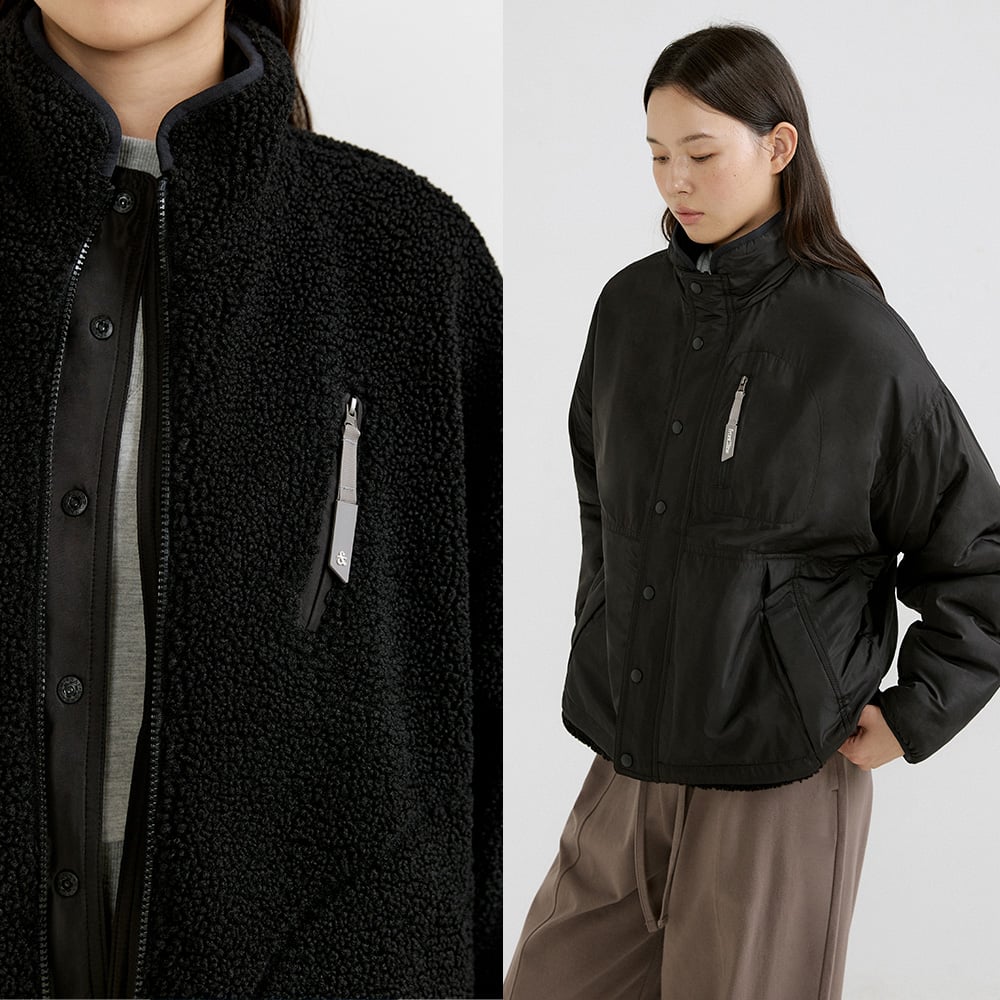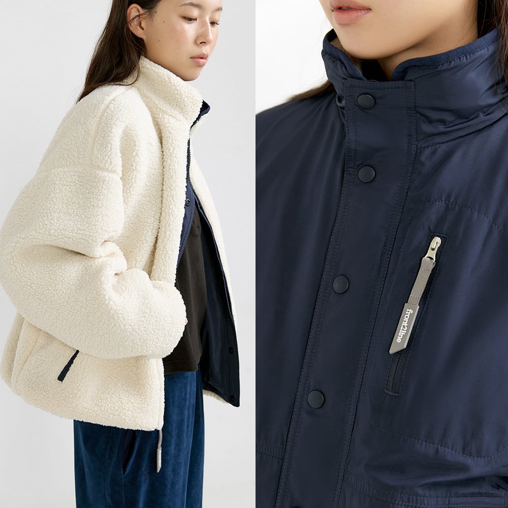 Product Description: 雙面穿外套採用柔軟的抓絨面料和輕盈的尼龍梭織面料製成,讓您可以自由打造兩種不同的風格。它採用落肩設計、寬鬆版型、領口和包邊工藝,以及雙面口袋,兼具保暖性和實用性。 Fabric Info: - 採用結實耐用的布料製成,經久耐用 - 日常使用的防水處理 - 重量輕,但保溫效果極佳 - 奢華光澤和整潔的表面觸感 - 柔軟蓬鬆的羊毛質地 Polyurethane 100%