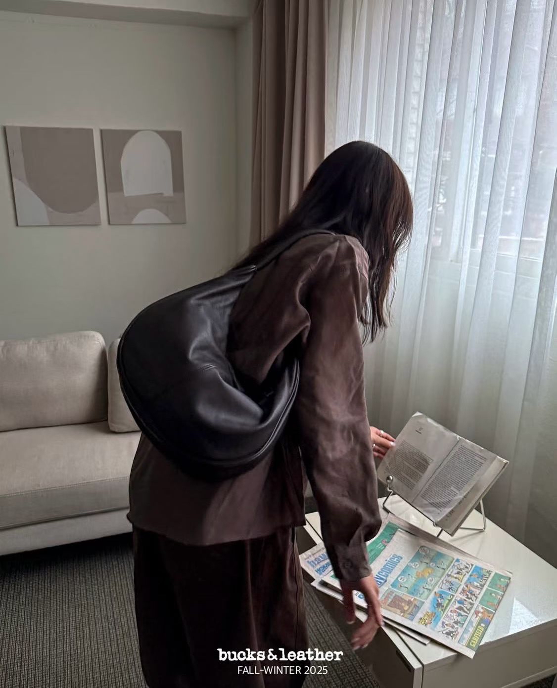 羊皮 - 朱古力啡/焦糖/黑色/灰色 翻毛山羊皮 - 灰色/啡色/卡其啡 尺寸:42*21*11cm Made in Korea 預訂款 7-14日左右(視乎韓國供貨)