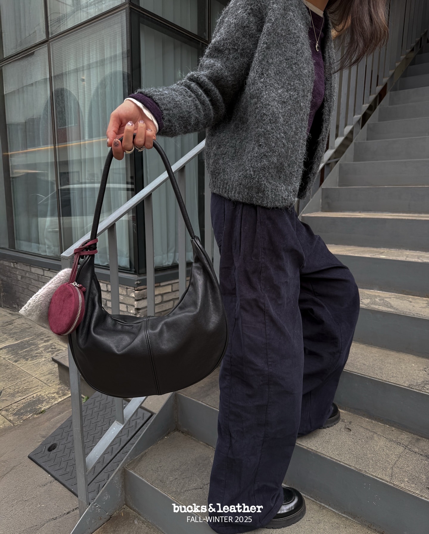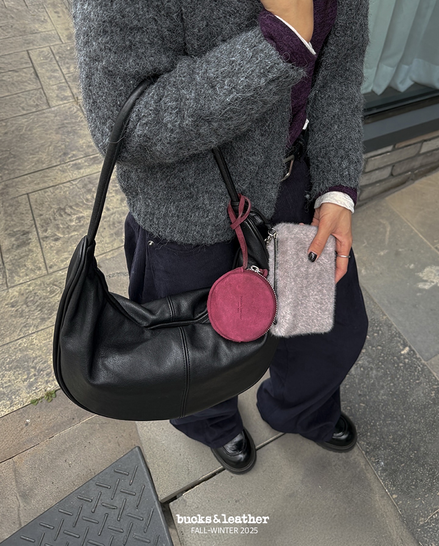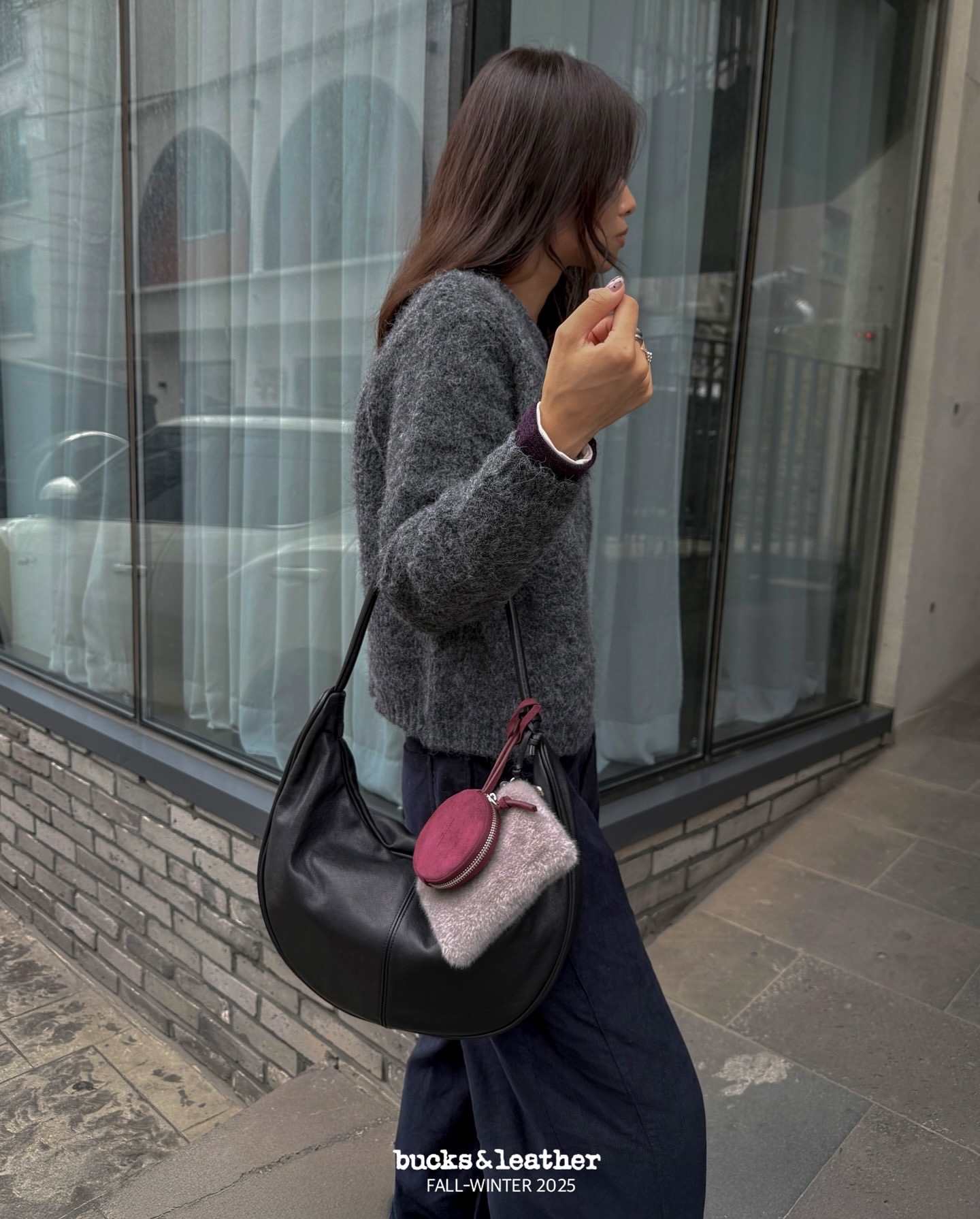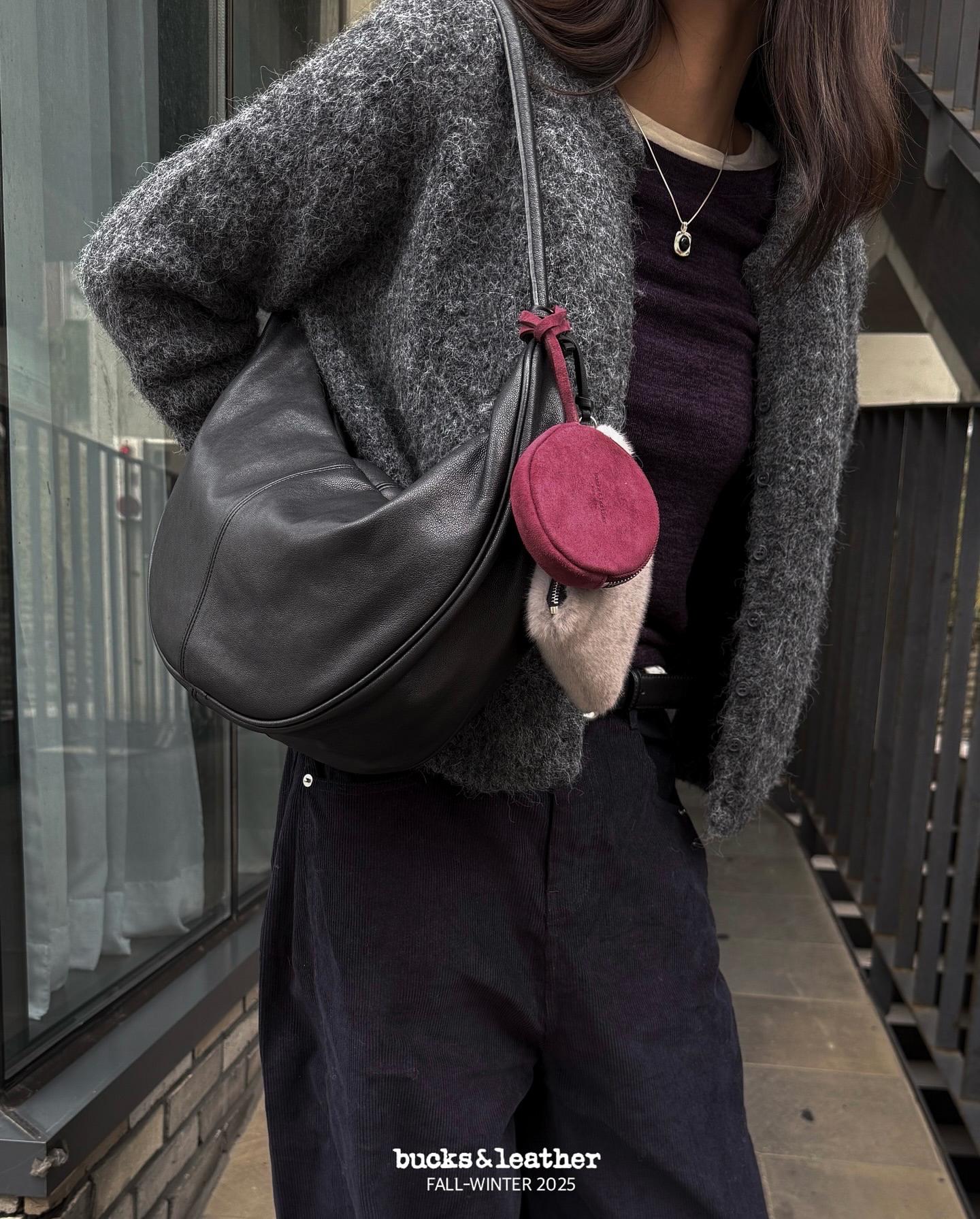 【25FW】預訂_羊皮/翻毛山羊皮弧線單肩餃子包 (L) By Bucks & leather