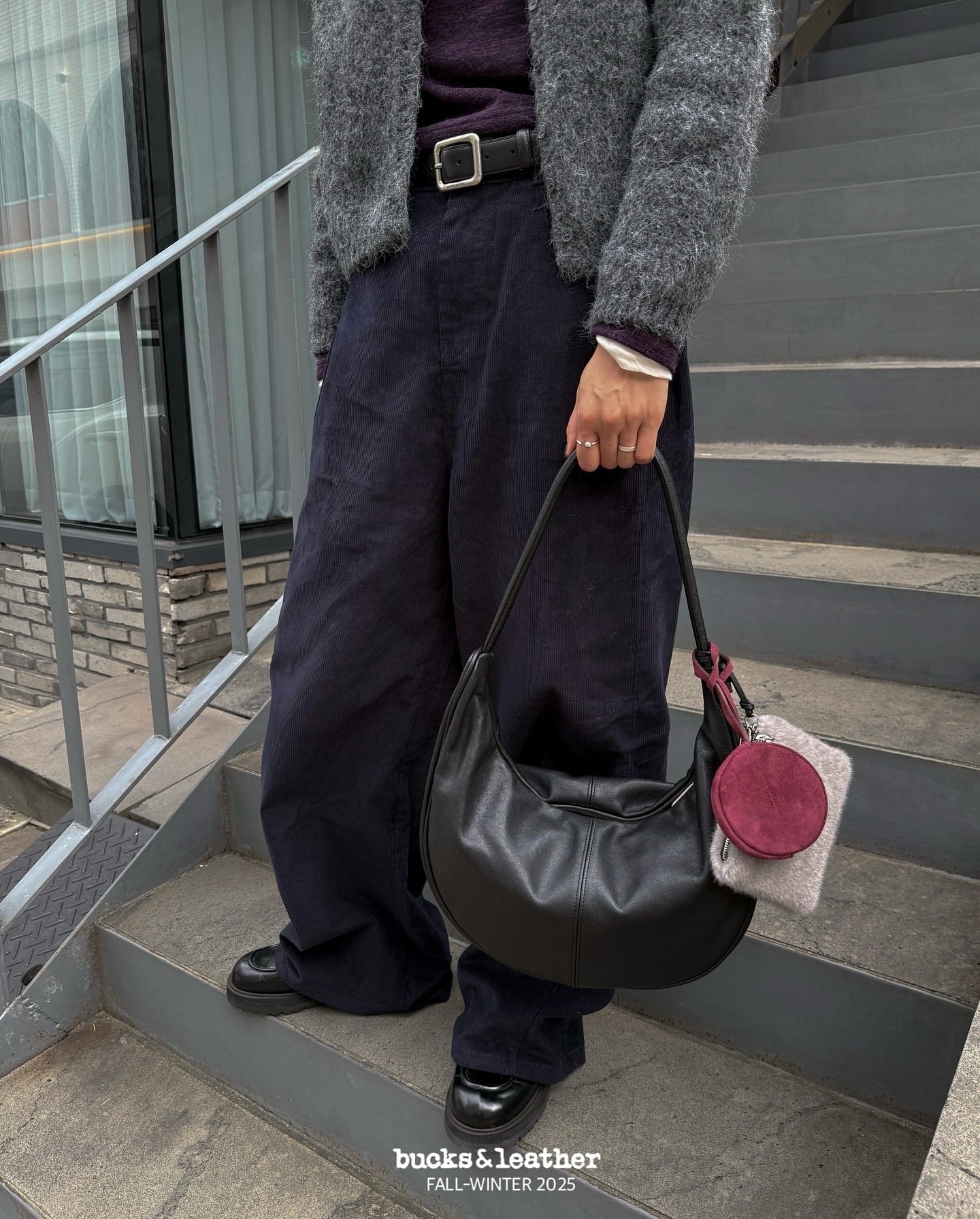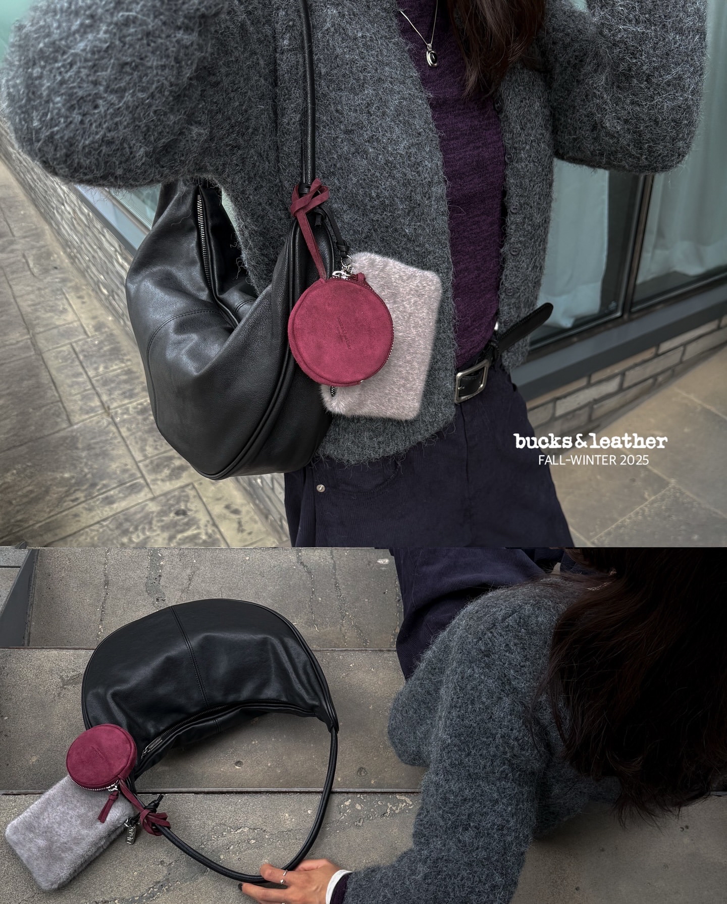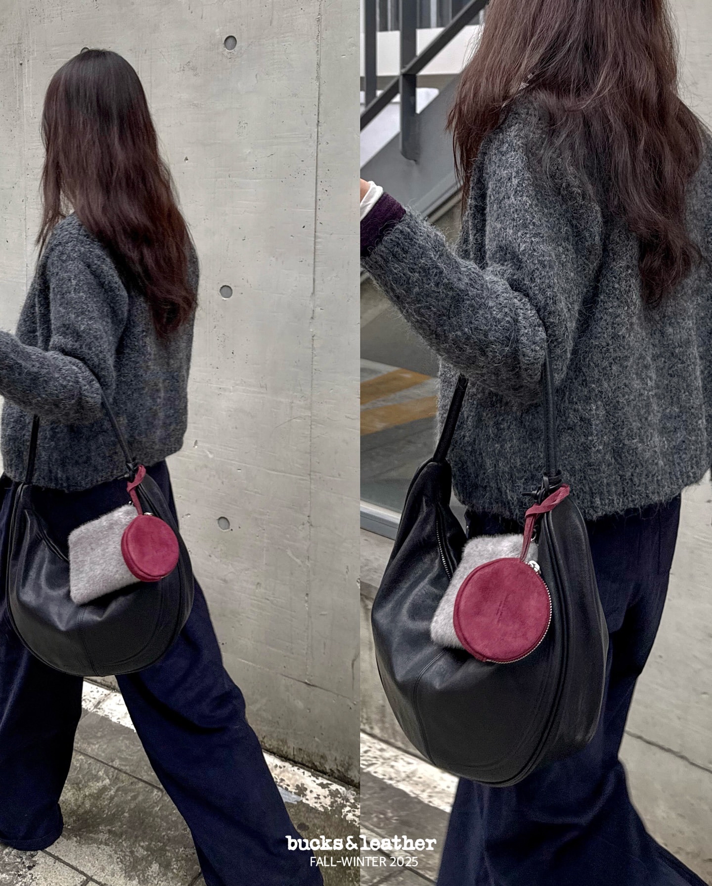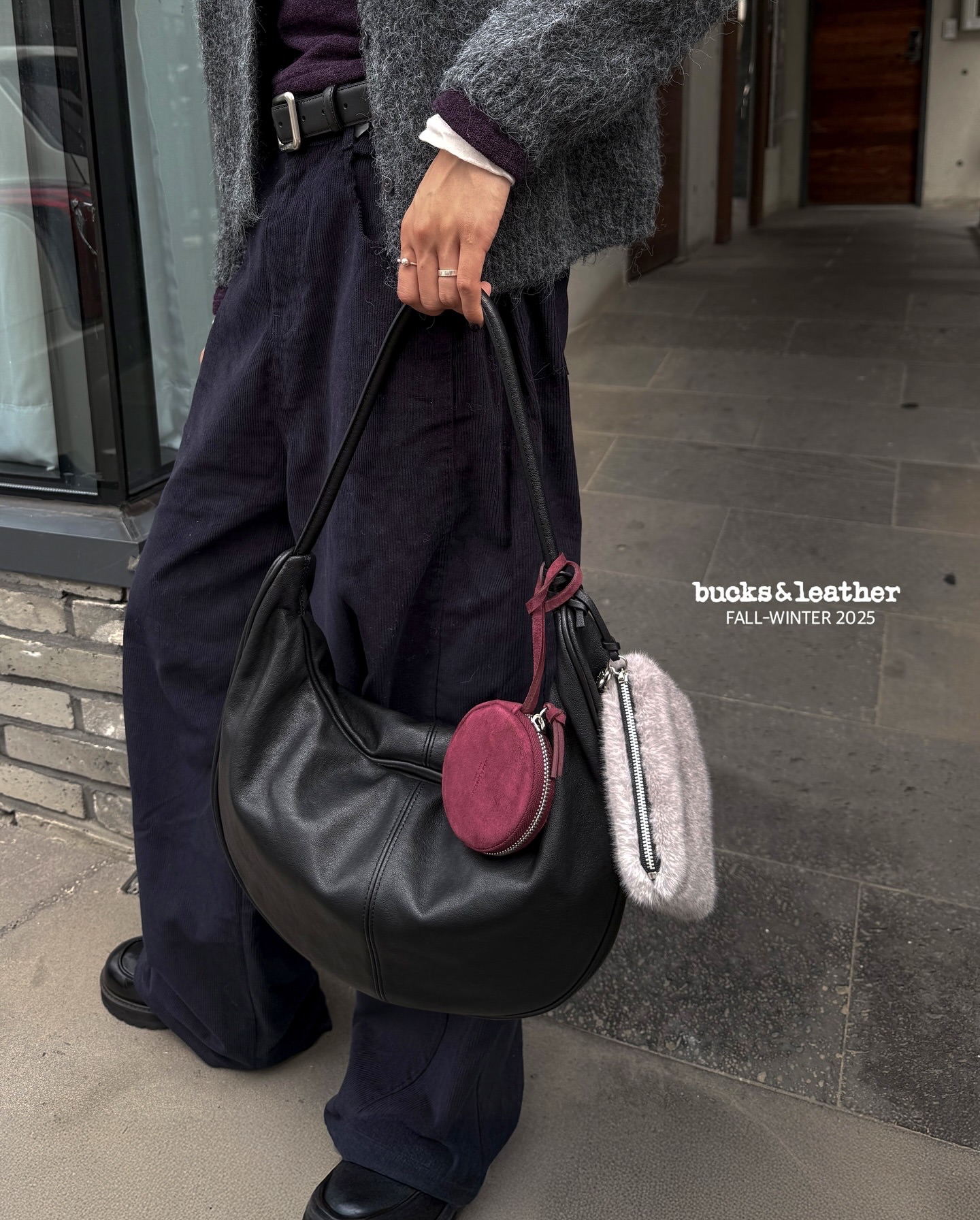 【25FW】預訂_羊皮/翻毛山羊皮弧線單肩餃子包 (L) By Bucks & leather