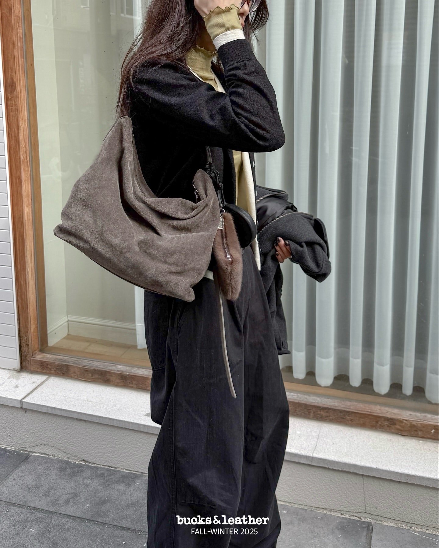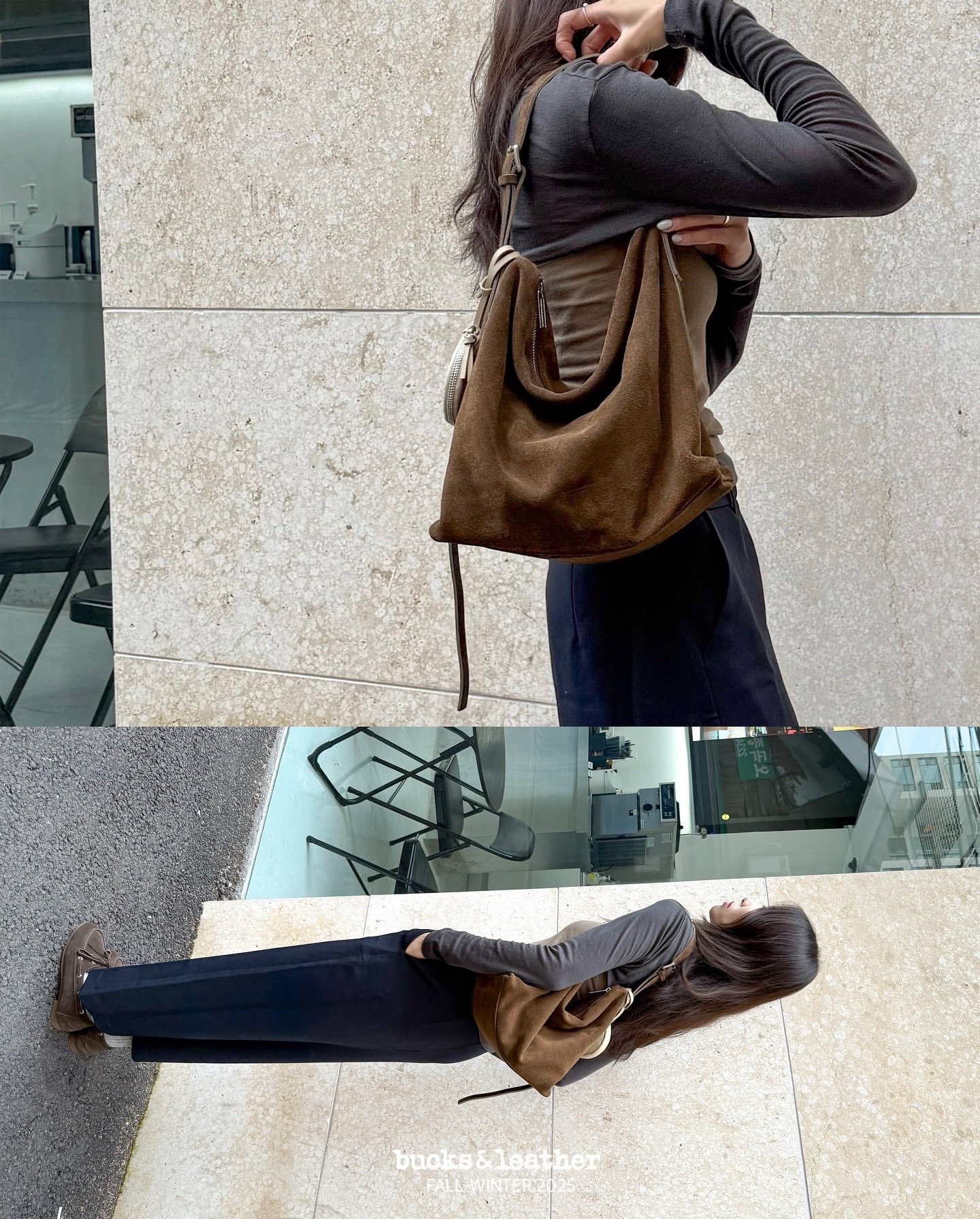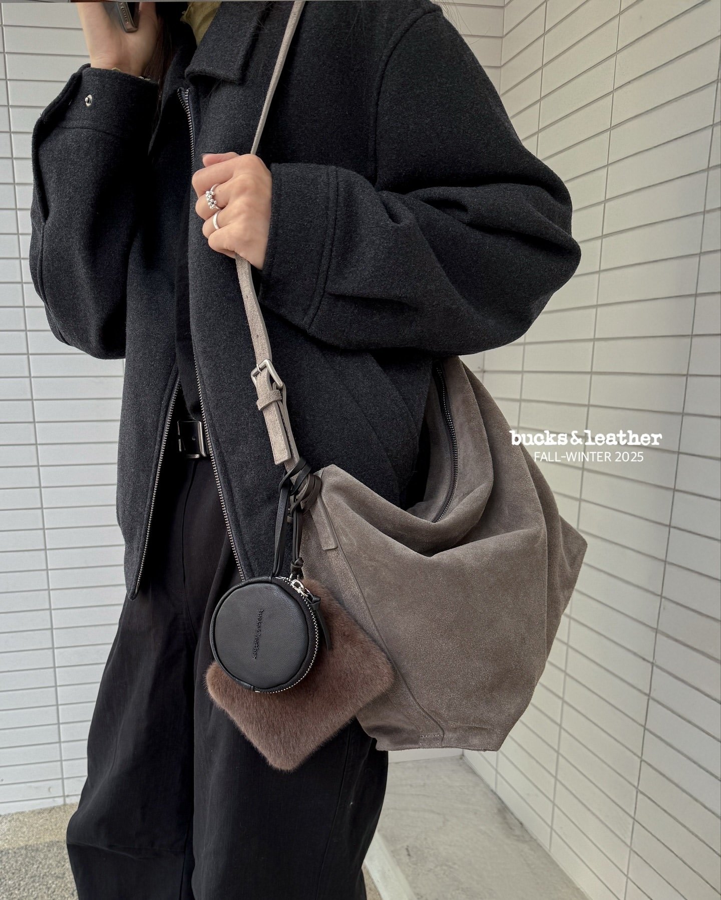 麂皮 黑色/灰色/啡色/啡褐色 Size: 28 X 30 X 10.5cm 肩帶可以調整長度 Made in Korea