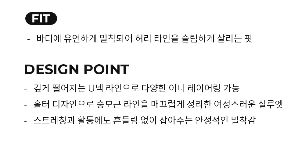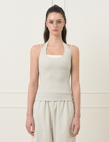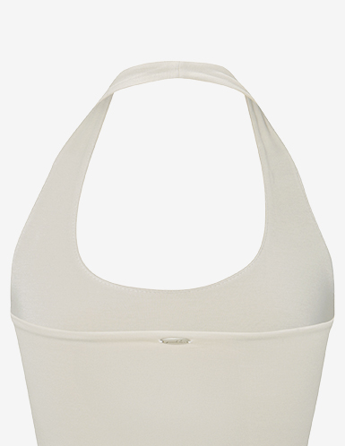 🏷️ 核心設計亮點 (Fit & Design) 1. 柔軟貼合,顯瘦腰線 (Slim Fit) 流暢貼合剪裁:布料能溫柔地包裹身體輪廓,特別加強腰部線條的收緊效果,穿上即擁有流暢的 S 曲線。 2. 細節美學 (Design Point) 深 U 型領口 (Deep U-Neck):領口下挖深度適中,除了單穿,也非常適合與內搭(如圖片中的細肩帶)進行層次疊穿,穿法更多樣。 斜方肌修飾 (Shoulder Line):掛脖設計經過特別考量,能完美修飾、平滑斜方肌線條,打造優美的「直角肩」視覺效果,呈現充滿女人味的輪廓。 高穩定性與活動力 (High Stability):即使在大動作活動或伸展時,高彈性布料也能穩固貼合不位移,提供十足的安全感。 不含胸墊