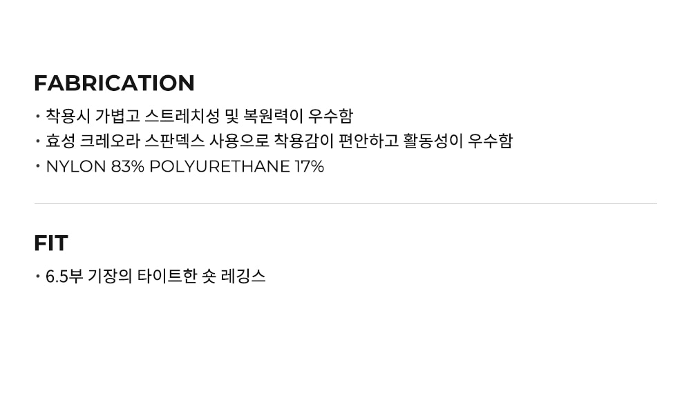 極簡七分剪裁, 長度剛好蓋過膝蓋,打造簡約俐落的 Capri Leggings 造型。 中腰舒適包裹, 採用中腰設計(Mid-rise),穩定包覆腹部且毫無壓迫感,運動時更自在。 修飾腿部比例, 褲管落點精確定位於小腿最纖細處,在視覺上延伸腿部線條,讓比例更修長。 高實穿多樣性, 無論是健身訓練或是日常休閒穿搭,都能輕鬆駕馭的高彈力多功能設計。 Nylon 83% Polyurethane 17%