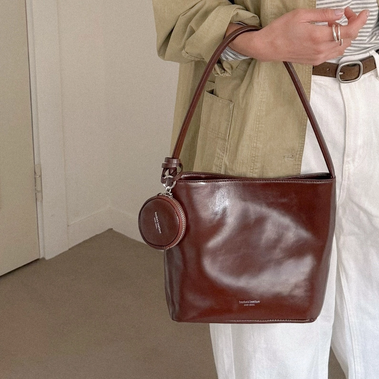 REAL GENUINE LEATHER 100% - PULL-UP COW LEATHER W 6.5 / H 6.5 Made in Korea