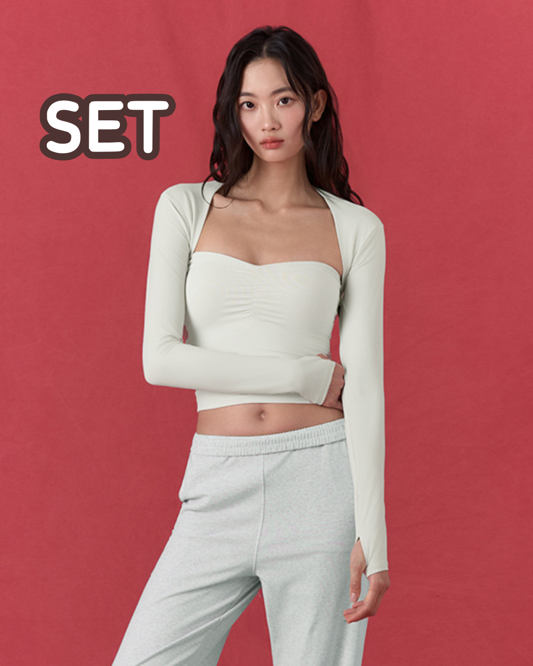 預購SET優惠_Shirring Tube top & Shrug Bolero Cardigan by Grandeline