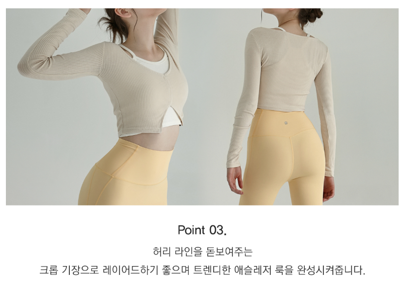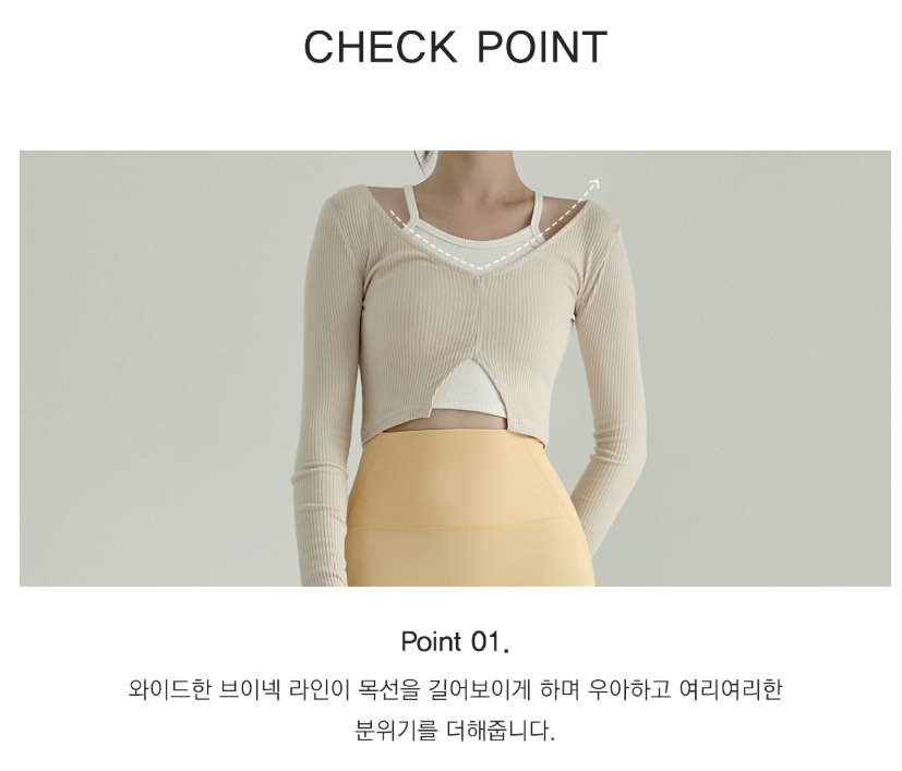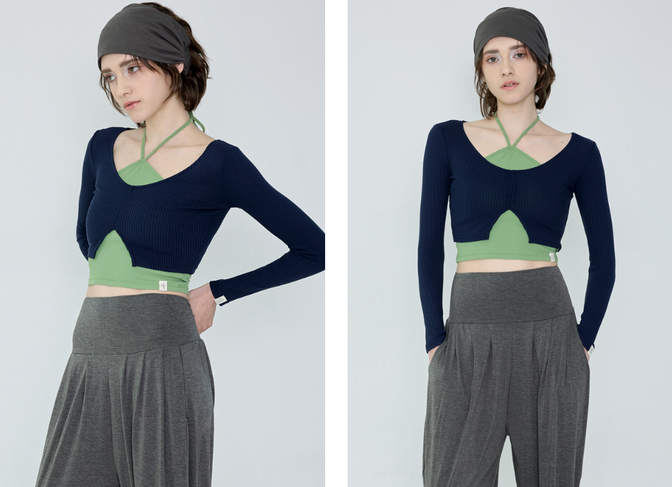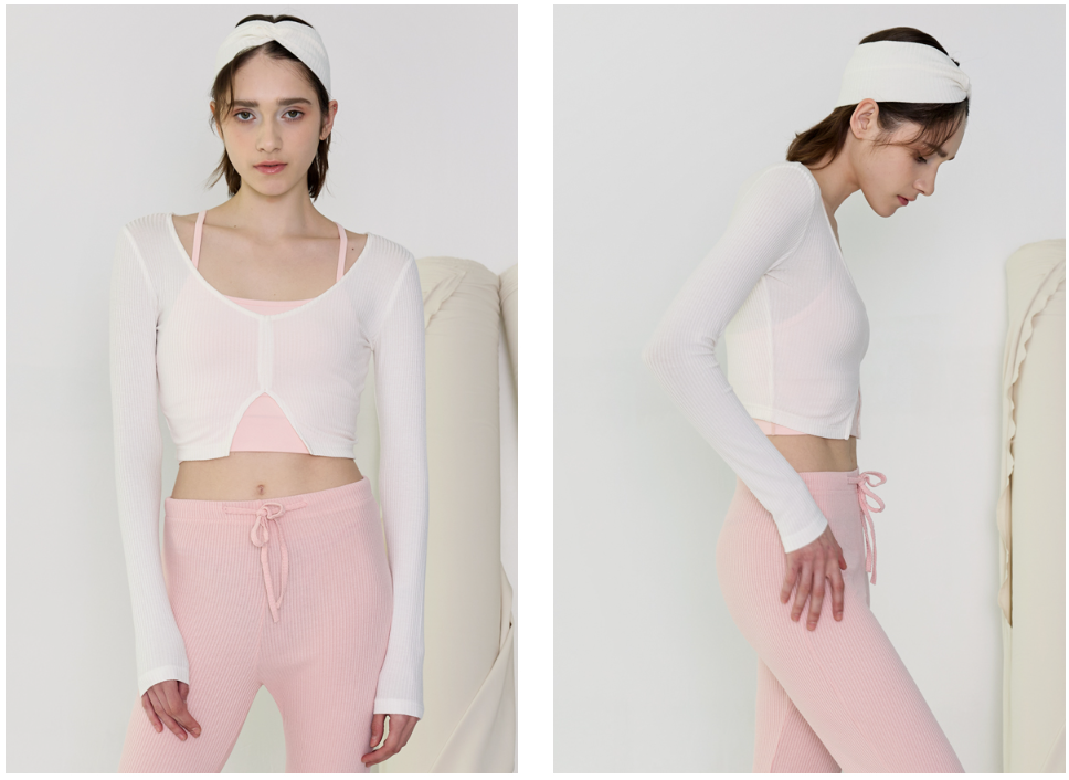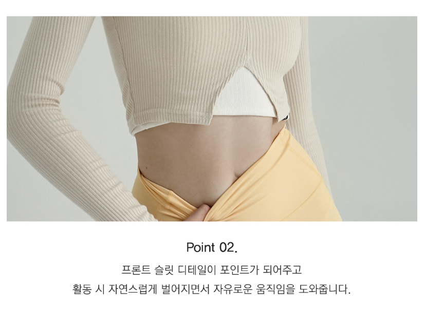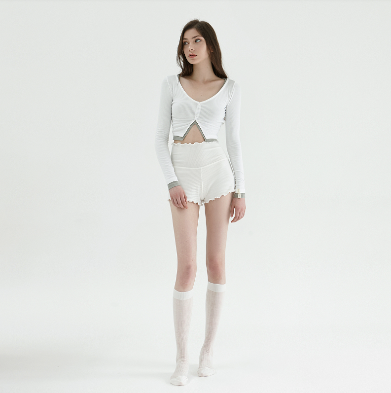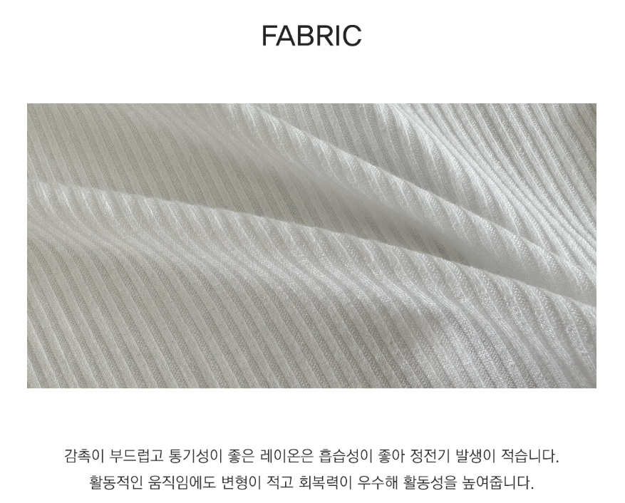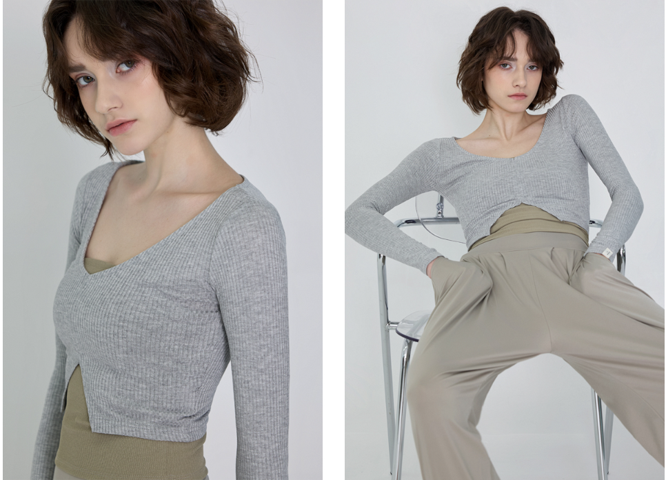 - 寬領口搭配前開衩,展現女性化氛圍與鎖骨線條 - 纖細修身, 垂直坑條紋路(Ribbed),視覺收緊身形並提升豐盈感。 - 百搭實穿, 短版外罩衫設計,與日常休閒穿搭 Made In Korea